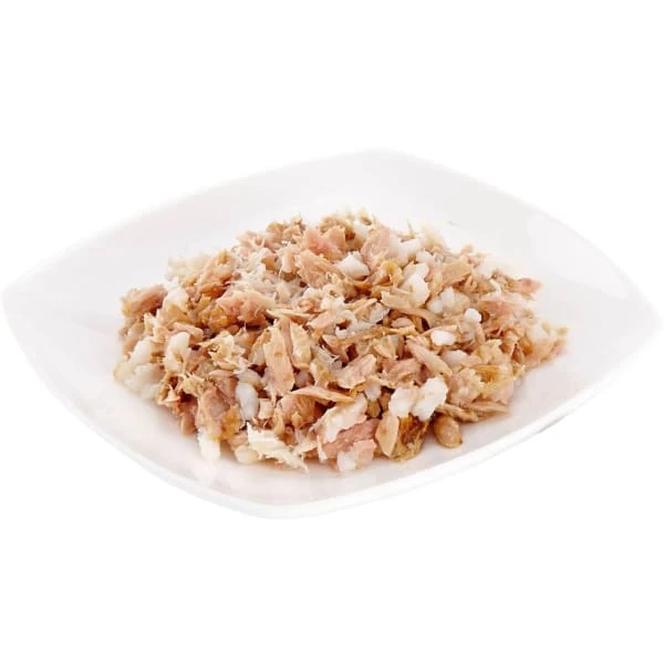 Tuna Fillet 56%, Fish Broth 35%, Rice 5%, Crab Meat 4%