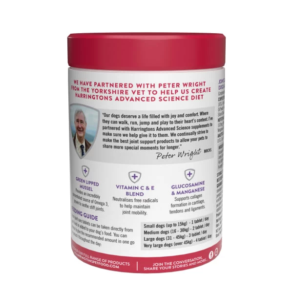 Joint support chews for adult dogs aged 7+ years. Complementary pet food to promote joint support in adult dogs. Green lipped mussel provides an incredibly concentrated source of Omega 3, proven to soothe stiff joints.