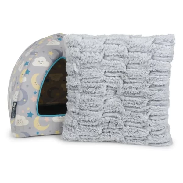 The Little Petface Cat Igloo is both stylish and practical. These super soft cosy cat igloo’s are perfect for keeping your cat warm and secure. 100 Percent polyester faux fur outer with a polypropylene base and polyurethane foam filling. Cushion: 100 percent polyester faux sheepskin with polyester fibre filling.