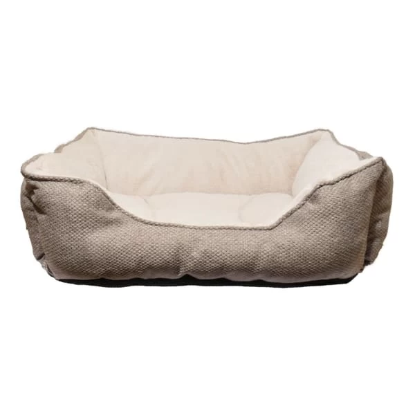 Luxurious truffle outer material complemented by a soft teddy bear fleece inner fabric. Stylish and modern. Tough stitching gives bed durability assisted by non-slip base. Thick cushioned sides.