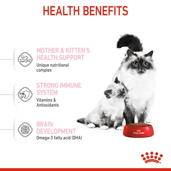 Royal Canin Mother & Babycat is specially adapted to meet your cat’s high energy needs at the end of gestation and during lactation. It’s also formulated to support the healthy development of nursing kittens up to 4 months old.