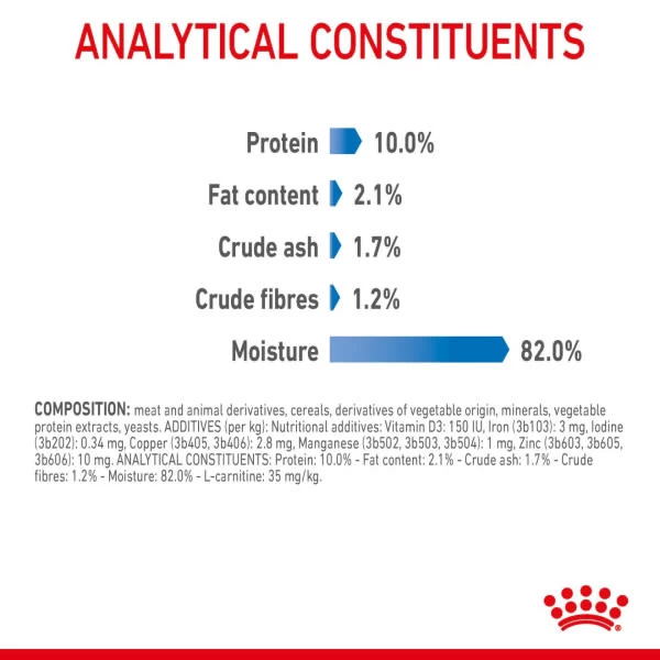 Royal Canin Ultra Light in Gravy and Jelly helps reduce the calorie intake of cats by as much as 19% to reduce weight gain and maintain a healthy weight. The complex blend includes nutrients that are also enriched with L-Carnitine to help support and stimulate a healthy and fast-acting metabolism.