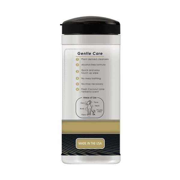 Remove a cloth from container. Rub gently over dirty coat on pet until clean. Avoid getting wipe solution in eyes. Available in a Lavender and Chamomile scent, or with a Coconut Lime Verbena scent.