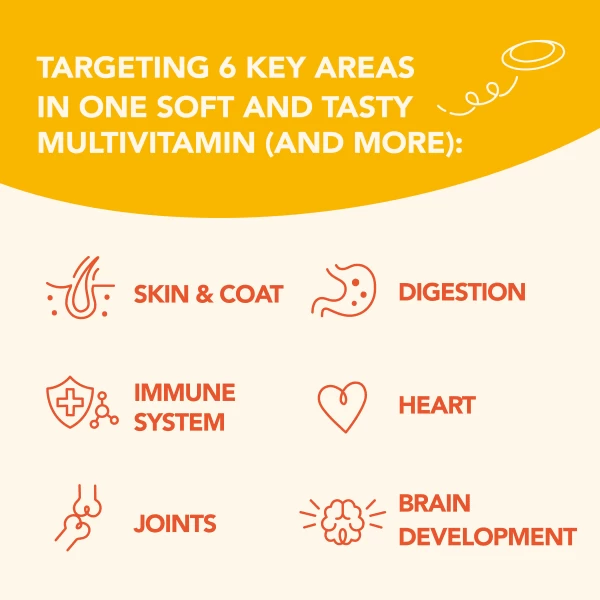 - Targeting 6 key areas in one soft and tasty multivitamin