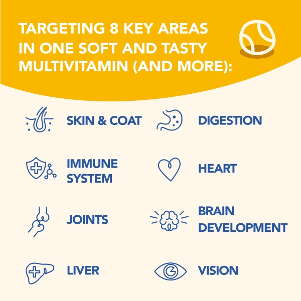 - Targeting 8 key areas in one soft and tasty multivitamin