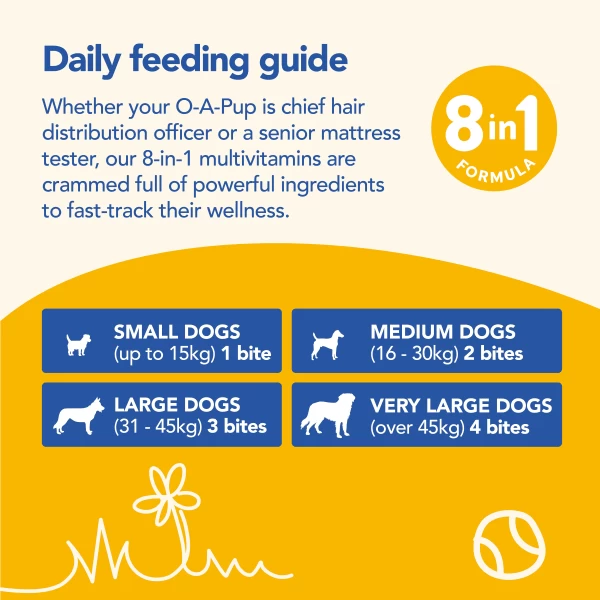 MultiVits can be taken alongside any other YuMOVE product. In fact, they’re a great addition to promote everyday wellbeing. They can be taken directly from your hand or added to your dog’s food. You can choose to give the recommended amount in one go or spread it throughout the day.